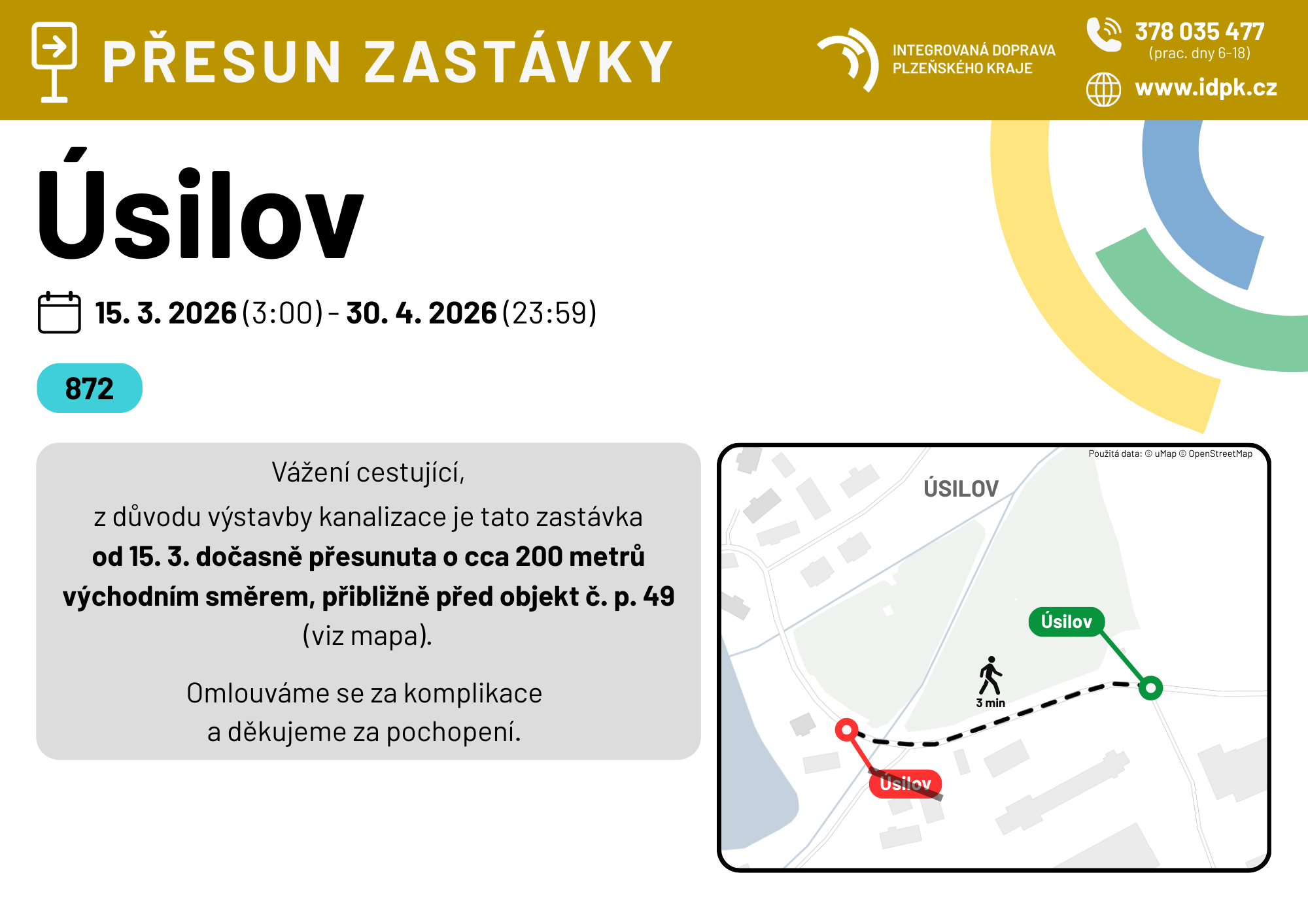 Dočasný přesun zastávky Úsilov 15. 3. - 30. 4. 2026