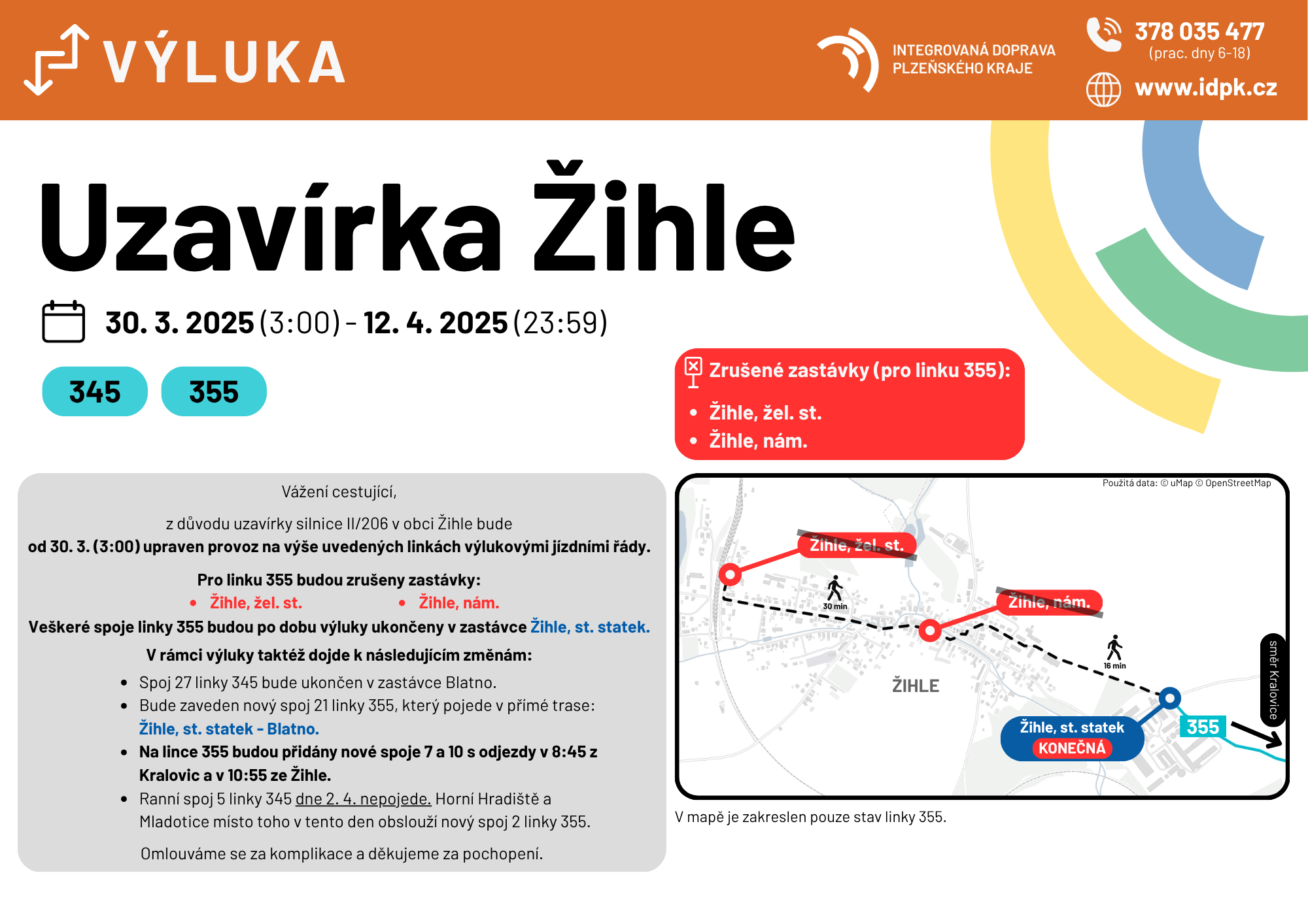Veškeré spoje linky 355 budou po dobu výluky ukončeny v zastávce Žihle, st. statek.